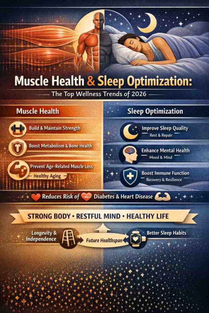 Health awareness in 2026 is undergoing a quiet but meaningful shift. After years dominated by weight loss goals, step counts, and calorie tracking, the wellness conversation is moving toward deeper biological priorities that determine how long, how well, and how independently people live. Muscle health and sleep optimization have emerged as the defining wellness trends of the year, not as fleeting lifestyle fads but as evidence-backed pillars of long-term health that cut across age groups, professions, and fitness levels.