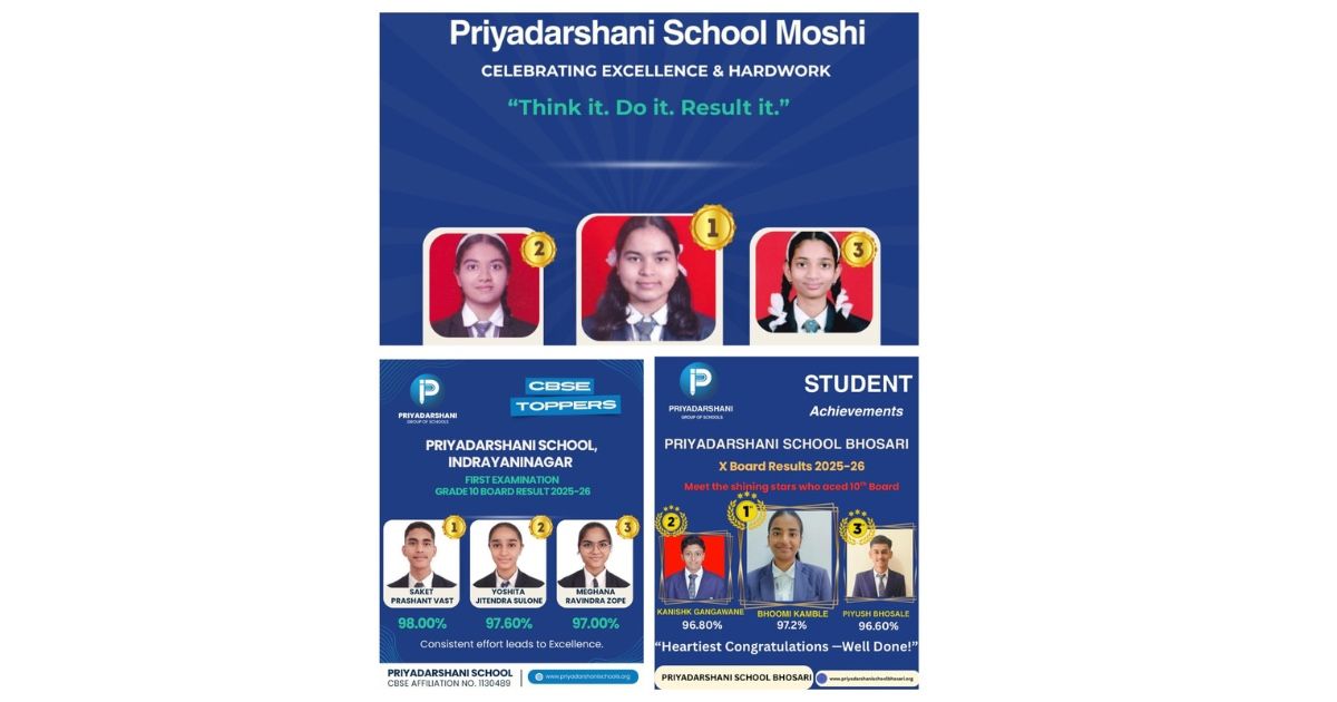 We are truly honoured to share the outstanding achievements of our students, which reflect not just academic excellence but also their discipline, perseverance, and commitment to learning. At the Priyadarshani Group of Schools, we believe that every child has unique potential, and our role is to nurture that with the right guidance and values. These results are a collective success—my heartfelt congratulations go to our students, their families, and our dedicated faculty, whose consistent efforts have made this milestone possible. I would also like to express my sincere gratitude to the management for their continued vision, guidance, and unwavering support, which have been instrumental in shaping an environment where excellence thrives. We remain committed to empowering our students to excel not just in academics, but in every aspect of life.” Dr. Rajendra Singh, CEO, Priyadarshani Group of Schools, Indrayaninagar, Pune.